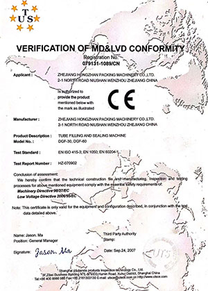 公司通过ISO9001质量管理体系认证 主打产品封口机获得欧共体CE认证